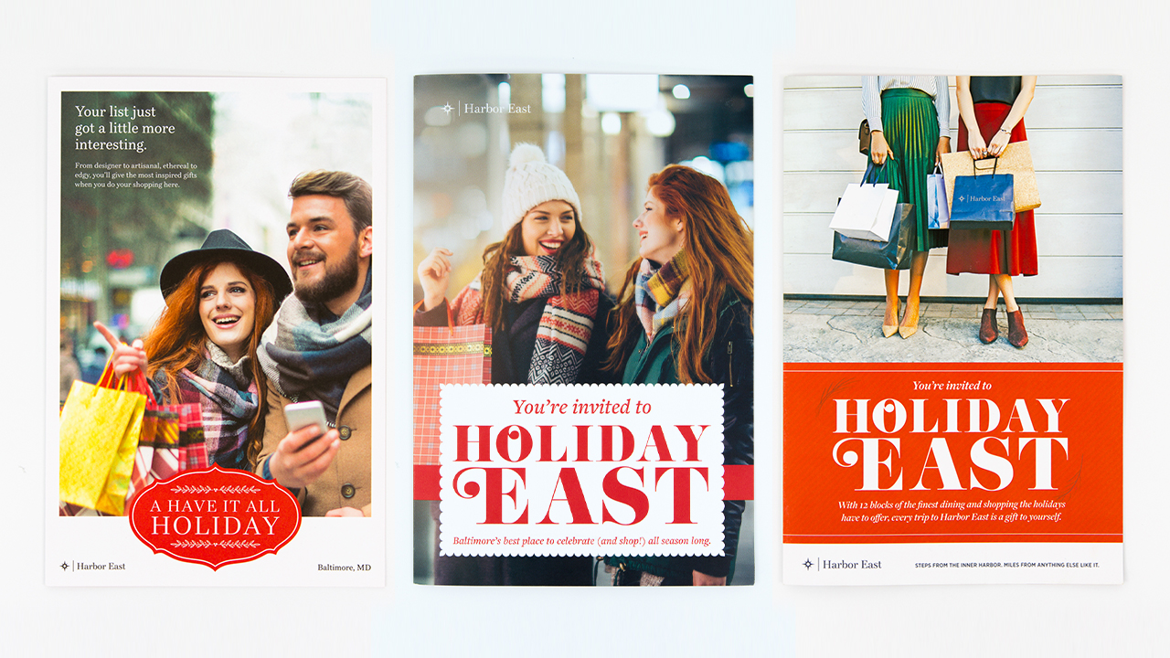Back in 2001, our team developed the name “Harbor East” — when what would one day become the most fashionable address in Baltimore was, at the time, merely a complex of abandoned warehouses. Over a decade later in 2015, we were given the chance to once again brand the glossiest neighborhood in the city with fresh new advertising campaigns and design directions.